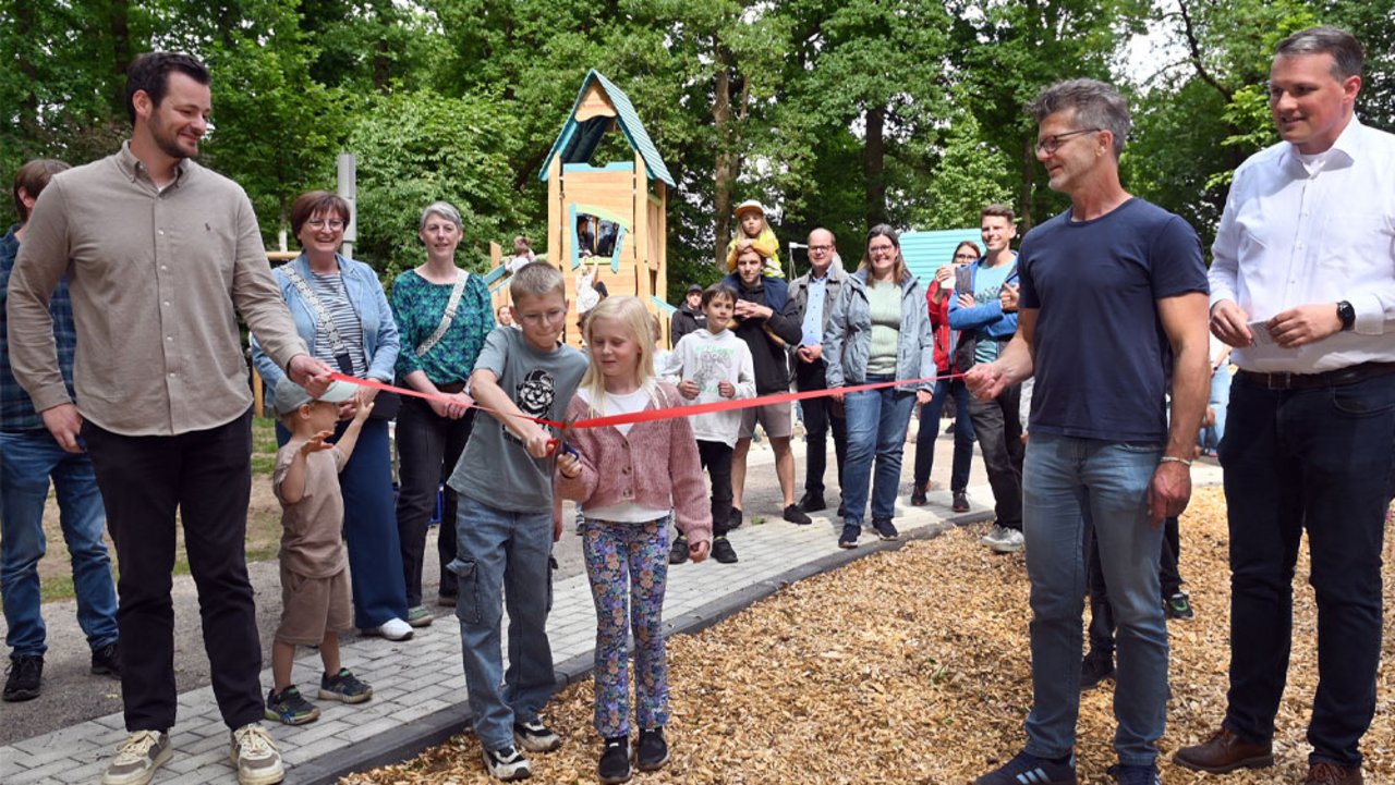Der neu gestaltete Kinderspielbereich im Forks Busch ist in dieser Woche feierlich eröffnet worden. Zahlreiche Gäste, darunter viele Kinder, sind am Mittwochnachmittag bei bestem Wetter zusammengekommen, um gemeinsam mit Bürgermeister Tobias Stockhoff, Kinderbürgermeisterin Mia Henkel und Kinderbürgermeister Elyas Ahmetovic die Fertigstellung dieses wichtigen Projekts der Dorfentwicklung Rhade zu feiern.