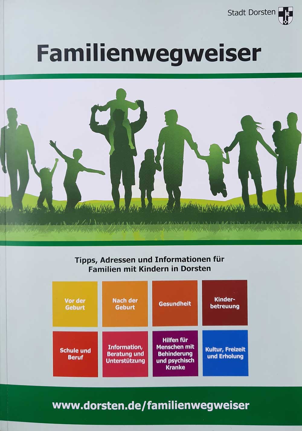 2015 ist in Dorsten erstmals der „Familienwegweiser“ erschienen, eine umfangreiche Broschüre mit Tipps, Adressen und Informationen für Familien mit Kindern. Das beliebte und ergiebige Info- und Nachschlagewerk liegt ab sofort in der vierten, vom Team des Familienbüros umfassend aktualisierten Auflage vor. Familien finden darin alle wichtigen Informationen und Kontaktadressen von „Adoption“ bis „Wunschgroßeltern“.