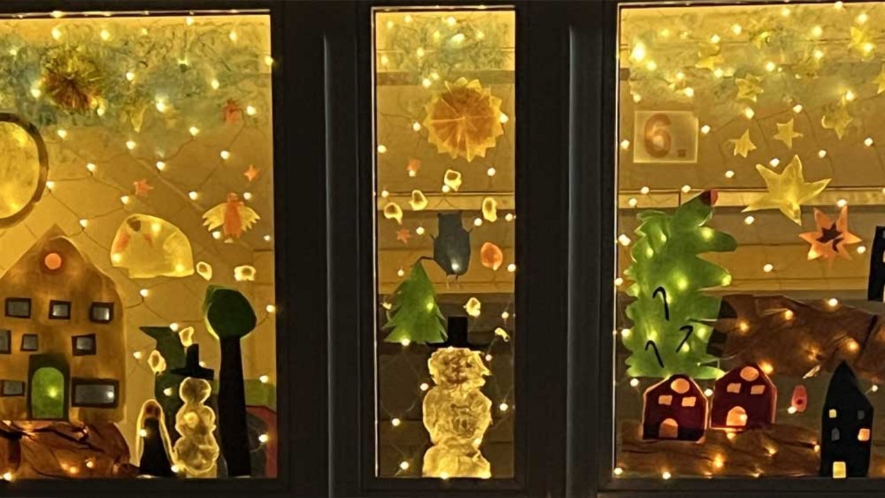 Das liebevoll gestaltete Adventfenster ist Teil der gemeinsamen Adventfensteraktion des Familienzentrum St. Urbanus und dem städtischen Kindergarten am Stuvenberg, bei der bis Weihnachten insgesamt 24 Fenster als Rhader Adventkalender fungieren und in der Dämmerung zu Spaziergängen einladen.