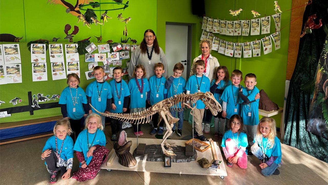 Zwei Wochen lang herrschte in der städtischen Kindertageseinrichtung Am Stuvenberg in Rhade echtes Urzeitfieber. Unter dem spannenden Motto „Ein Land vor unserer Zeit – den Dinosauriern auf der Spur!“ begaben sich die „Schlaufüchse“ auf eine abenteuerliche Reise in die Welt der Dinosaurier.