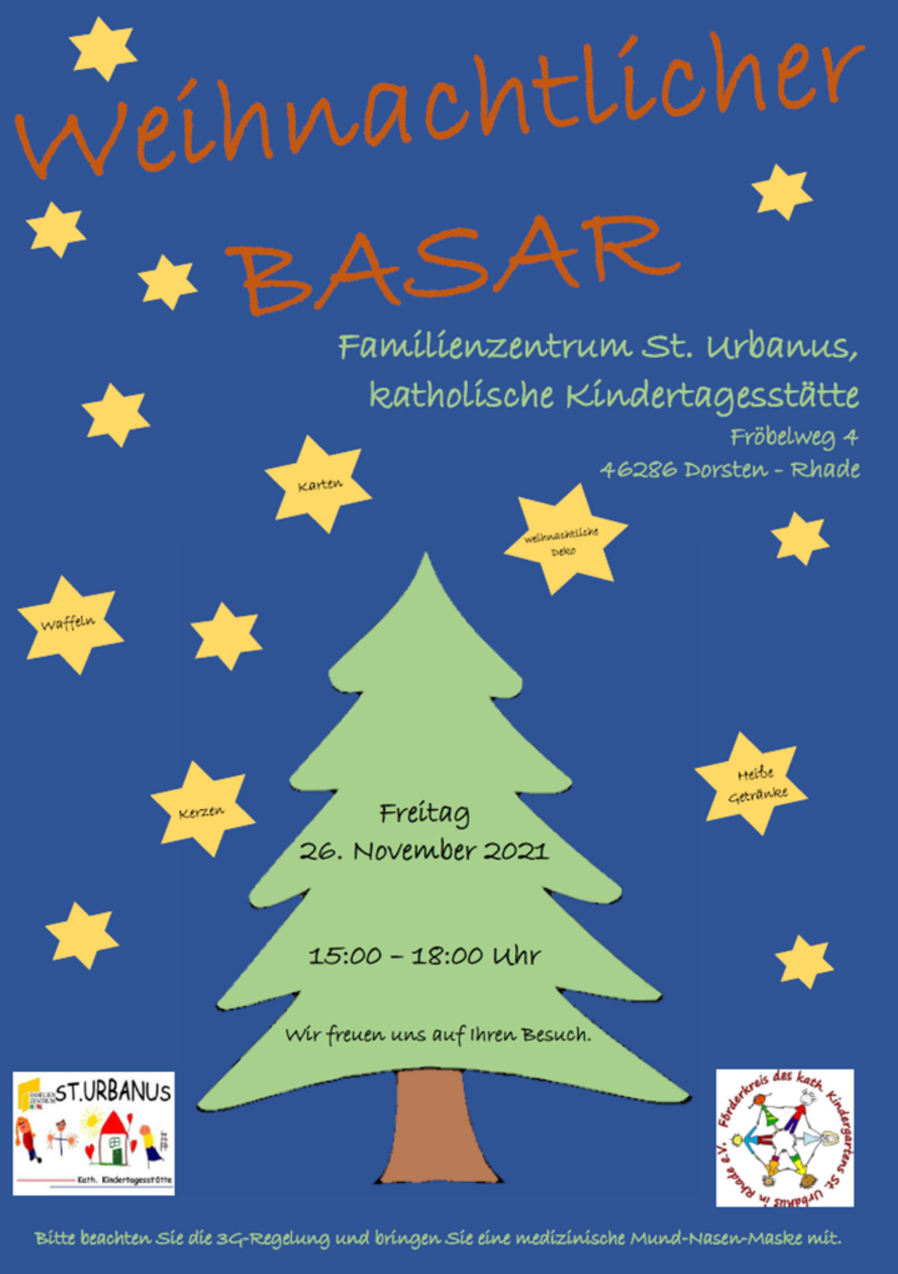 Am Freitag, den 26. November 2021 laden das Familienzentrum und der Förderkreis dann gemeinsam zum weihnachtlichen Basar in und um das KiTa-Gebäude am Fröbelweg 4 in Dorsten-Rhade ein (3G Regelung). Von 15 bis 18 Uhr werden unter anderem gestaltete Karten, Kerzen, Sterne oder auch Kerzengläser, sowie kleine Gestecke angeboten. Auch ein von den Kindern gestalteter Kalender für das kommende Jahr 2022 liegt druckfrisch für die Abgabe an alle interessierten Besucher vor. Und wie es zu einem kleinen weihnachtlichen Basar gehört, werden alle Besucher mit Waffeln und heißen Getränken verwöhnt.