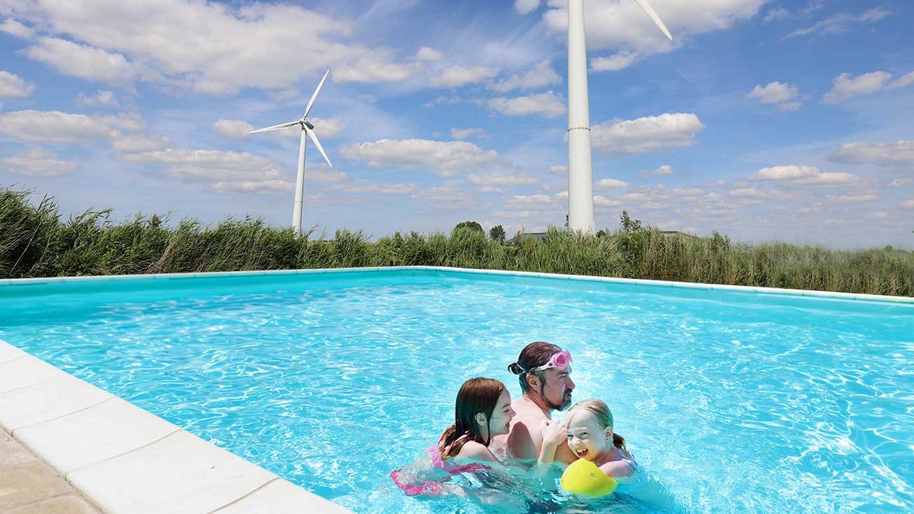 Doch anders als frühere Freibäder, soll es mit erneuerbaren Energien betrieben werden. Die Stromversorgung des Freibades soll über ein nahegelegenes Windrad erfolgen.