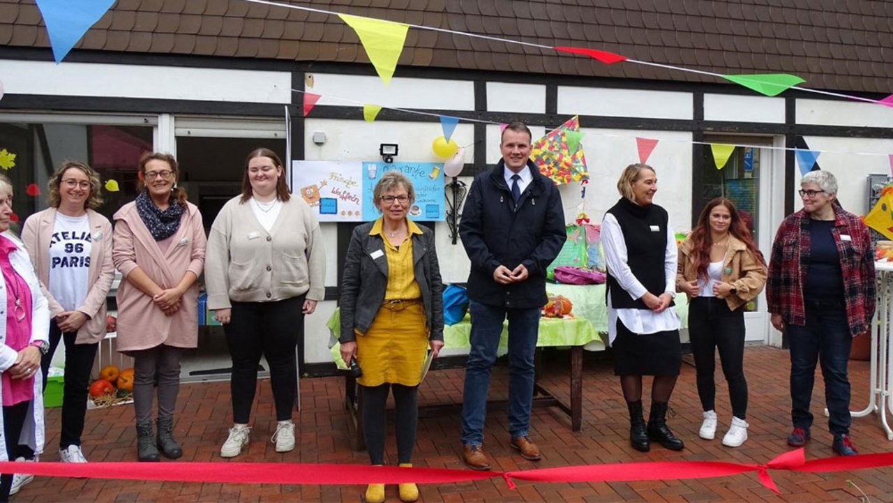 Auch Nina Laubenthal (Erste Beigeordnete der Stadt Dorsten), Stefan Breuer (Leiter des Amts für Familie und Jugend), Gudrun Lade, Elvira Wagstaff (Abteilung Kindertagesbetreuung), Nils Fiedler Zentrales Gebäudemanagement) und André Sänger (Personalratsvorsitzender) haben an der kleinen Eröffnungsfeier teilgenommen.