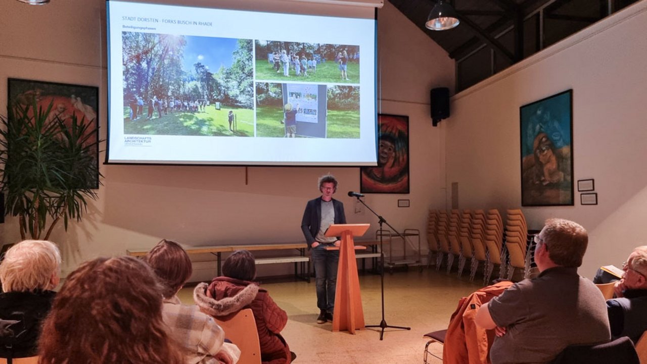 Als Gäste waren Bürgermeister Tobias Stockhoff, Dorfmanager Laszlo Taube und Landschaftsarchitekt Herr Vennemann geladen. Moderiert wurde der Abend von Heribert Triptrap, der durch die Veranstaltung führte und die verschiedenen Themen gekonnt lenkte.