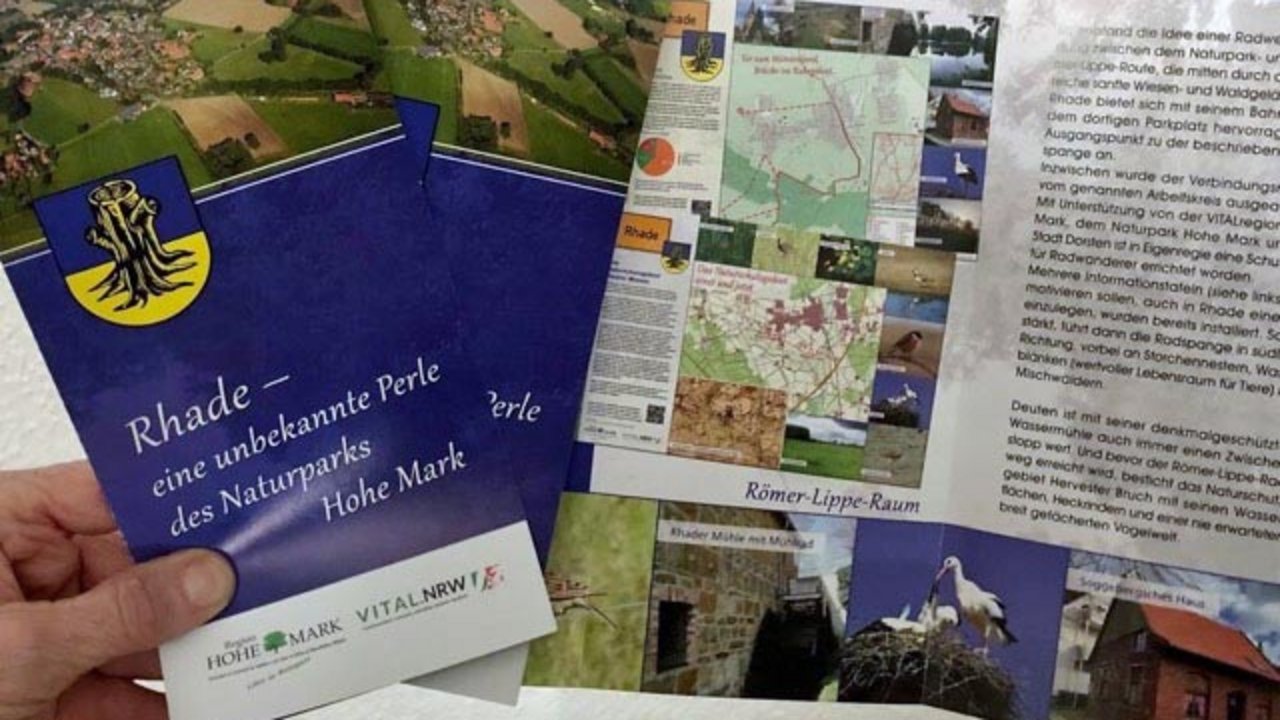 „Rhade - eine unbekannte Perle des Naturparks“, heißt es unübersehbar auf der Titelseite. Es ist eine liebevoll gestaltete Werbebroschüre der genannten Rhader, ehrenamtlich und nicht Partei gebunden agierend, um den sanften Tourismus innerhalb des riesigen Naturparks Hohe Mark auch in Richtung Rhade zu leiten.