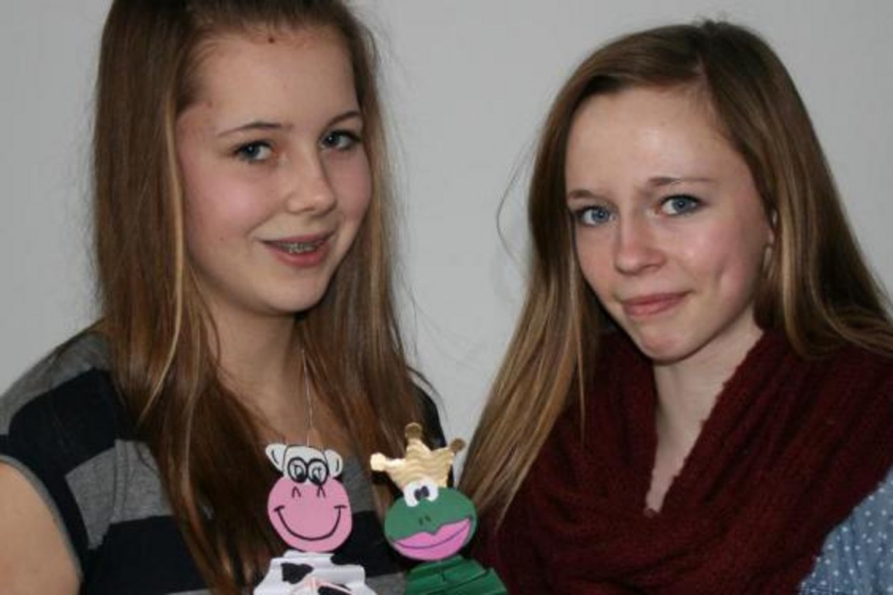 Antonia Mümken und Mara Hülsdünker aus Rhade hatten u.a. Knopfarmbänder mit angehängten Lebensgeschichtszetteln verkauft und den Erlös Projekten gegen Kinderarbeit in Indien gespendet. (Archivfoto: Lenja Hülsmann)