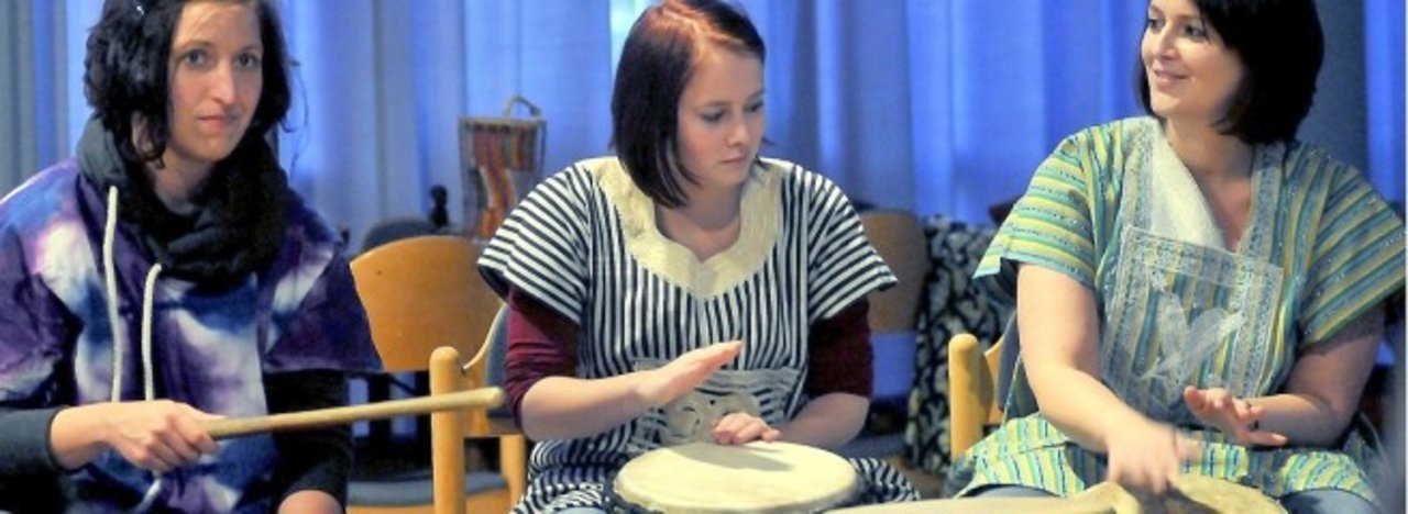 Auf einem Flyer, den liebevoll der Rhader Achim Schrecklein für den Ghanakreis in einer Auflage von 400 Stück produziert hat, wurde das bisher Geschehene dokumentiert. Am Samstag wurde ab 19 Uhr im Carola-Martius-Haus multimedial Rückschau gehalten, auf die 25 Jahre, in denen die Rhader das Schulprojekt in Hamile mit ihrer Hilfe angeschoben haben. „Im Moment konzentriert sich unsere Hilfe auf ein Mädchen-Wohnhaus für die Schule Hamile. Es ist wichtig, dass auch weibliche Schüler in den Genuss der Bildung kommen“, sagt Konrad Neumann vom Rhader Ghanakreis. Bunt und afrikanisch wurde es, als der Bottroper Ulli Siebenborn mit der Trommel, dem auf dem schwarzen Kontinent am wohl weitesten verbreitetem Instrument, vertraut machte.