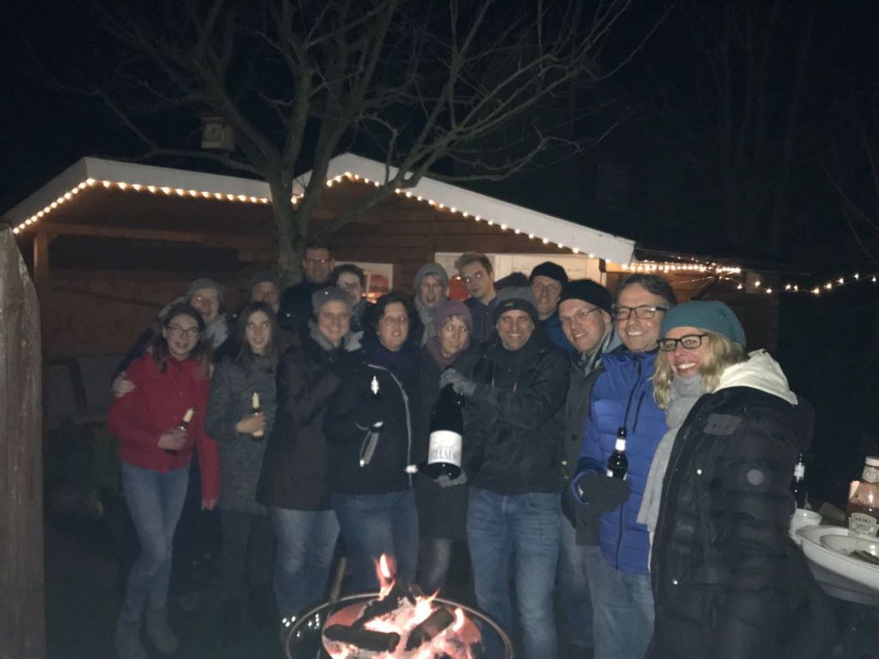 Angefangen hat es 2016, als man auf die Idee gekommen ist, anstelle des samstäglichen Feierabendbiers kurz vor Weihnachten einen „Feierabendglühwein“ zu trinken. Aus dem Vorschlag wurde schnell ein kleiner gruppeninterner Weihnachtsmarkt. Mit viel Mühe wurden kleine „Kunstwerke“ gebastelt, Glühwein zubereitet und der Garten weihnachtlich geschmückt. Pünktlich um 17:00 Uhr, zum Feierabend sozusagen, wurde der erste Winterpunsch ausgegeben und die Feuerschale angezündet.