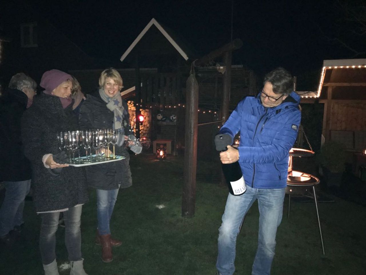 Dieses Jahr wurde der Weihnachtsmarkt zum Anlass genommen, die gewonnene Magnum Flasche Sekt der „800-Jahrfeier Rhade“ zu köpfen.