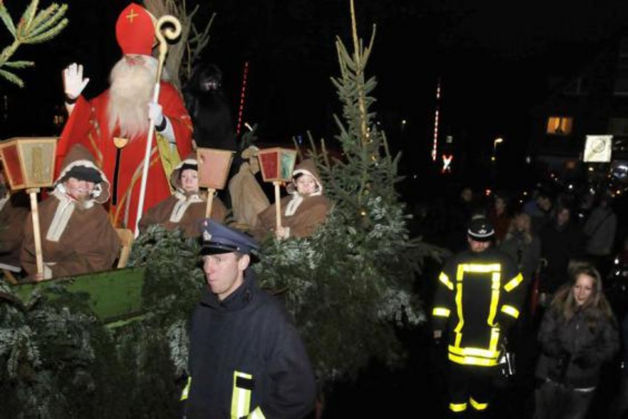 Am Samstagnachmittag besuchte der St. Nikolaus mit seinem Gefolge Rhade. Zusammen mit der Feuerwehr zog er von der Gemener Straße in Richtung Urbanusschule durch die Straßen der Gemeinde.